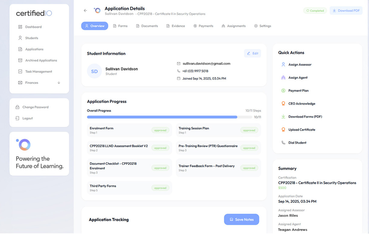 Certified IO is an end-to-end digital solution engineered for RTOs and education providers.