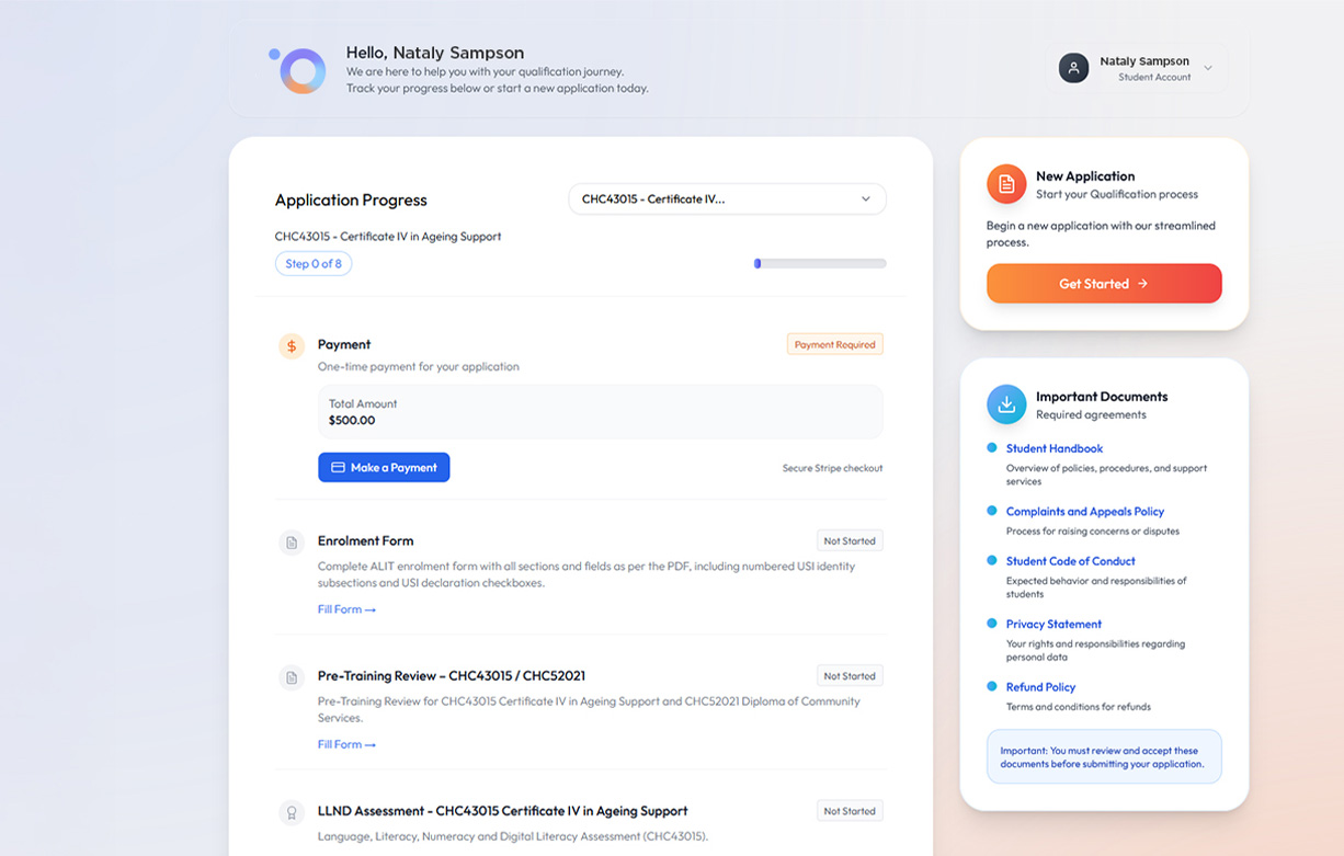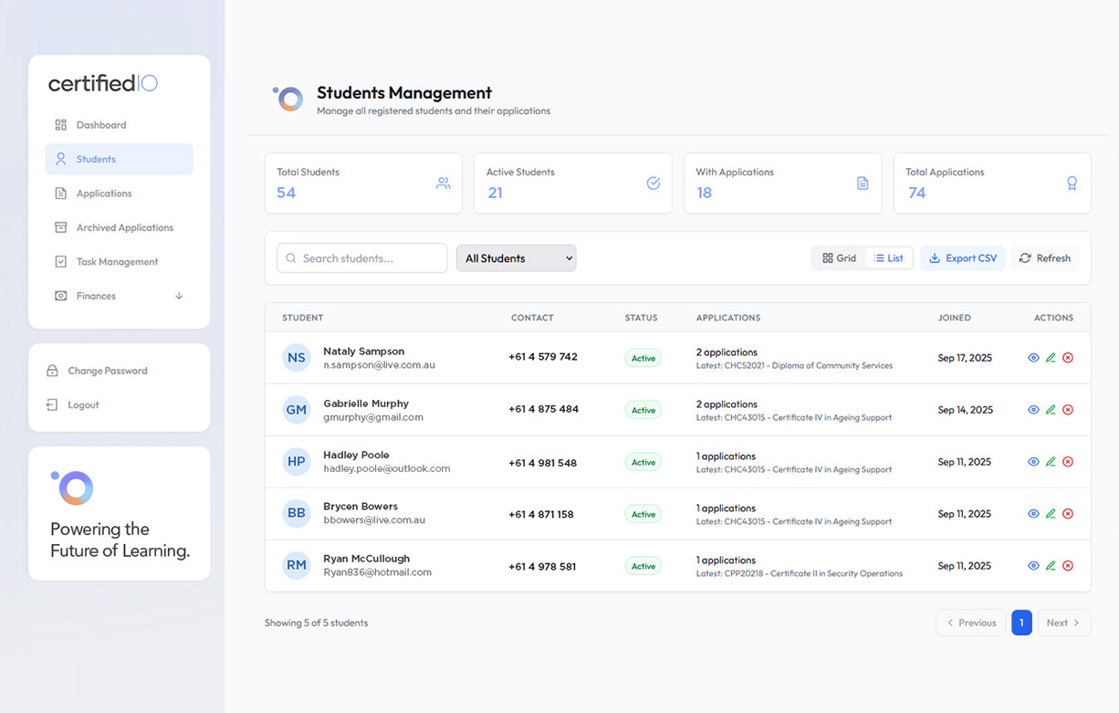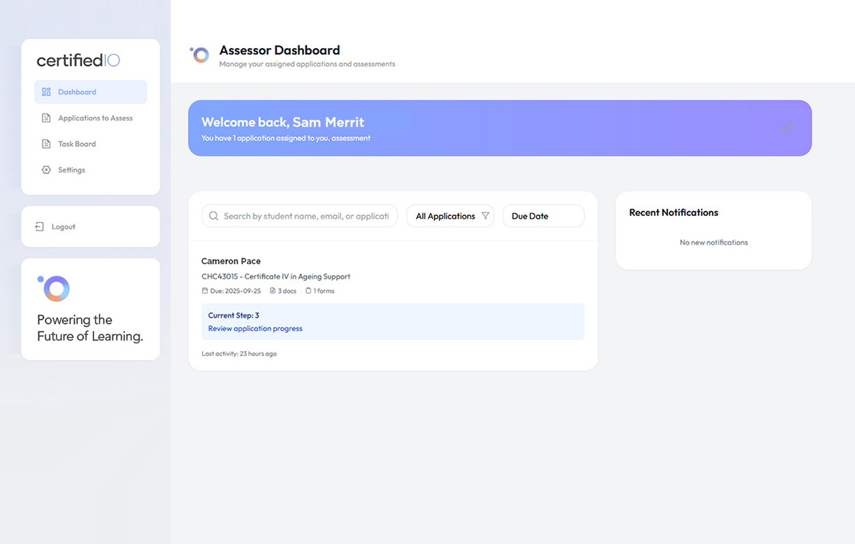 Experience purpose-built portals for students, assessors, admins, and agents. All in one seamless ecosystem.